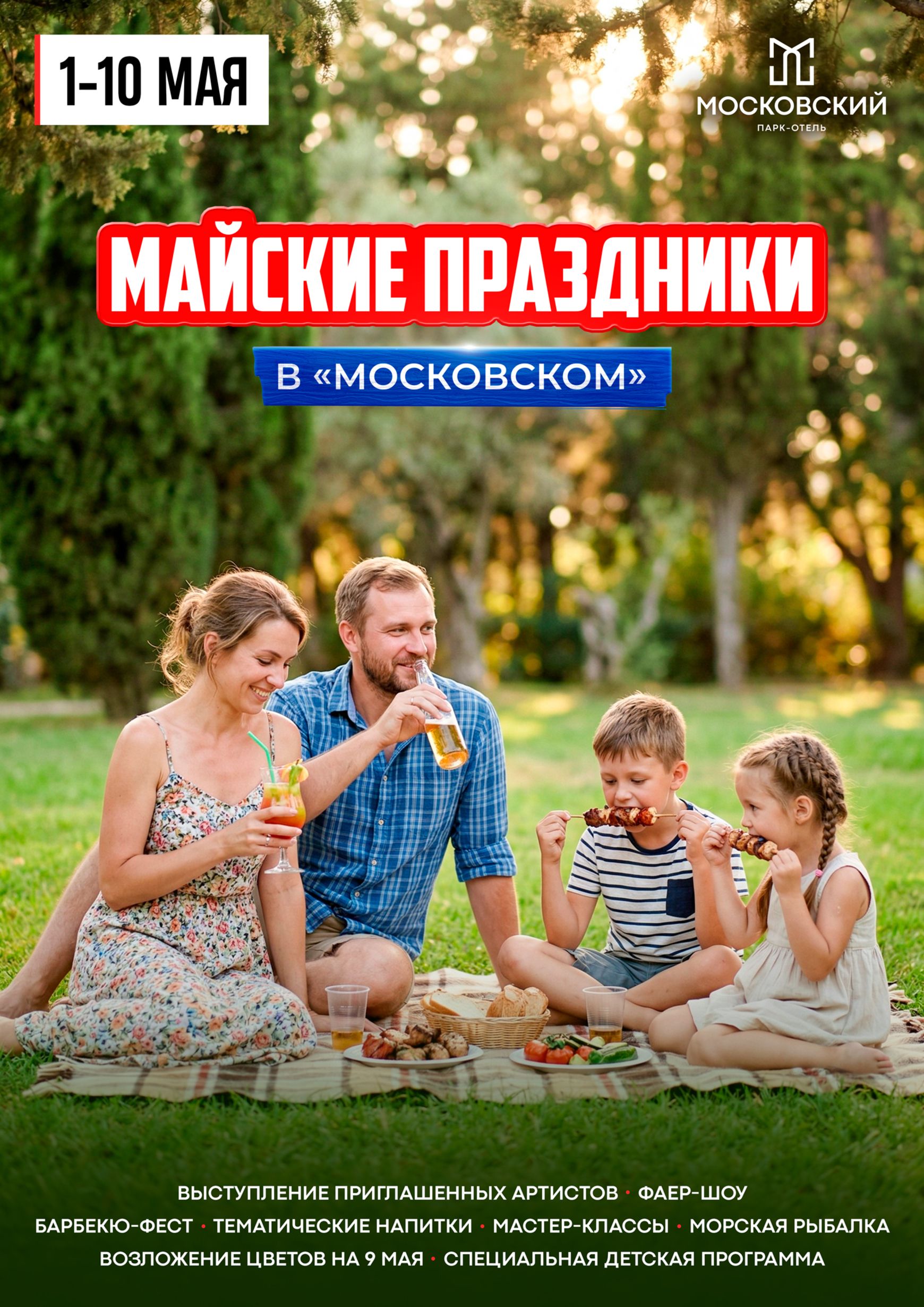 8-10 мая: Интерактивная битва шашлычников, яркая вечерняя программа с приглашенными артистами, фаершоу, пенная вечеринка в аквазоне, крафтовые игры и мастер-классы. Особая тематическая программа ко Дню Победы