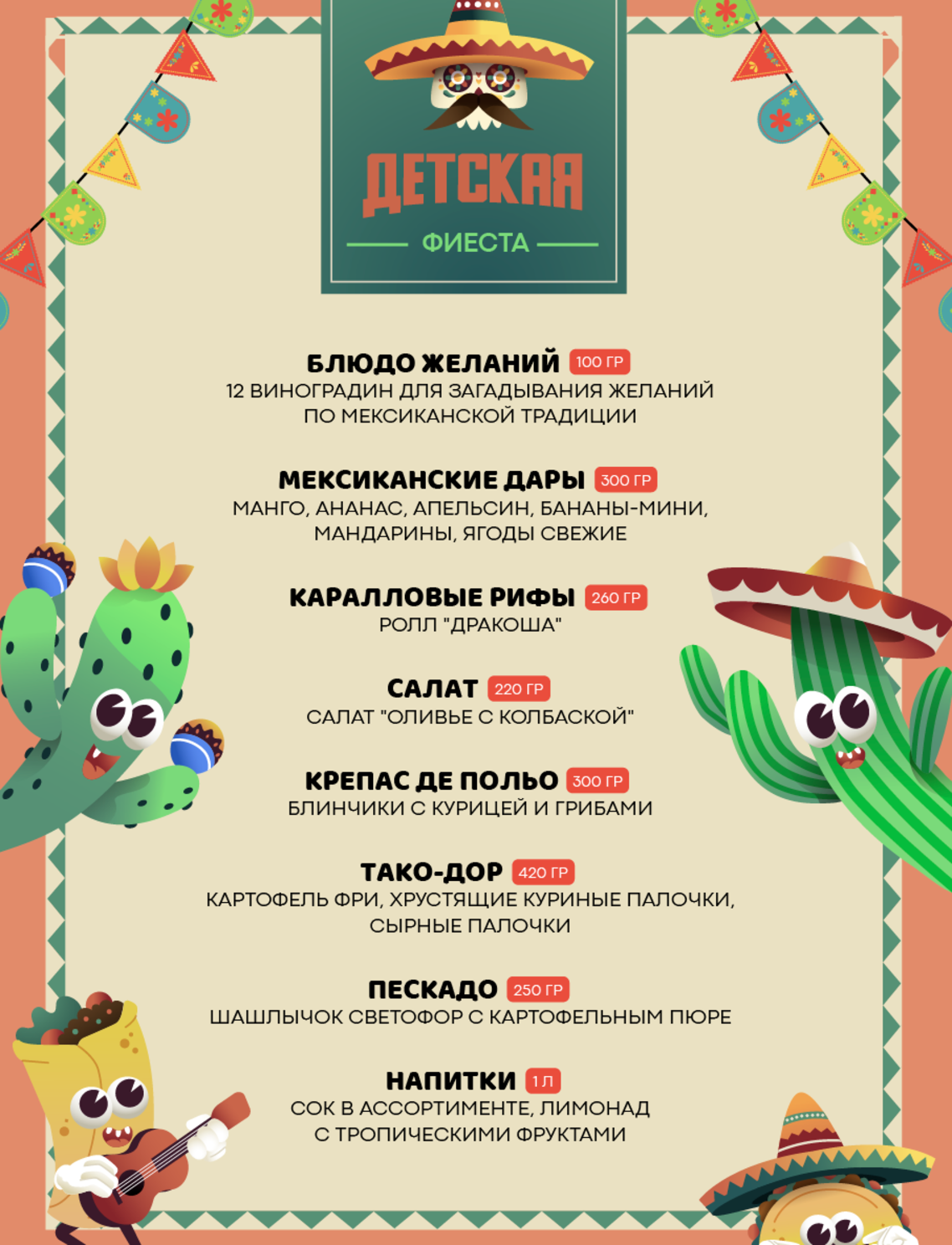 МЕНЮ С БЛЮДАМИ ЛАТИНСКОЙ КУХНИ